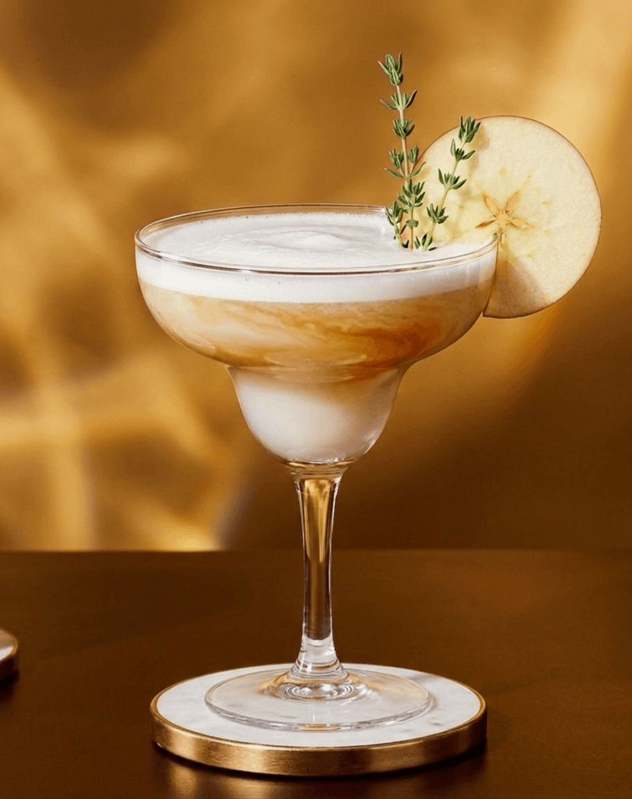 Für den Golden Harvest alle Zutaten in einen Shaker geben und kräftig shaken. Anschließend in ein großes Rocks-Glas mit Eis abseihen. Mit einer Apfelscheibe und einem Thymianzweig garnieren.